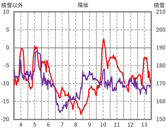 | 日 | 時 | 気温 | 降水 | 風向/風速 | 日照 | 積雪 | 降雪 |