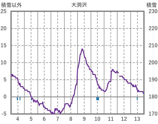 | 日 | 時 | 気温 | 降水 | 風向/風速 | 日照 | 積雪 | 降雪 |