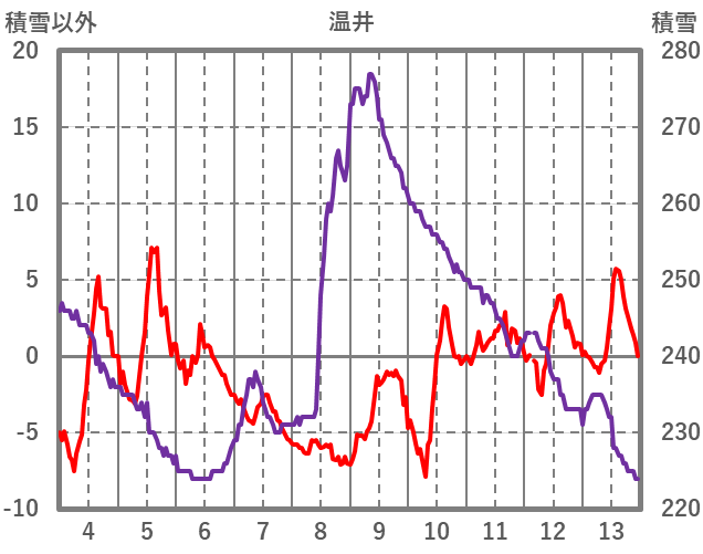 | 日 | 時 | 気温 | 降水 | 風向/風速 | 日照 | 積雪 | 降雪 |