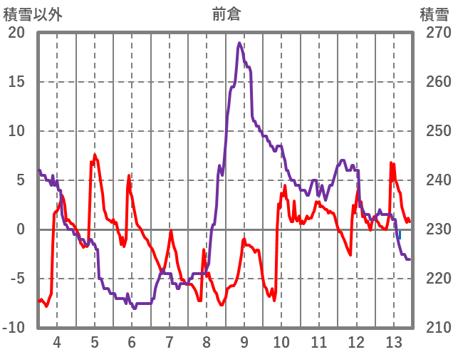 | 日 | 時 | 気温 | 降水 | 風向/風速 | 日照 | 積雪 | 降雪 |