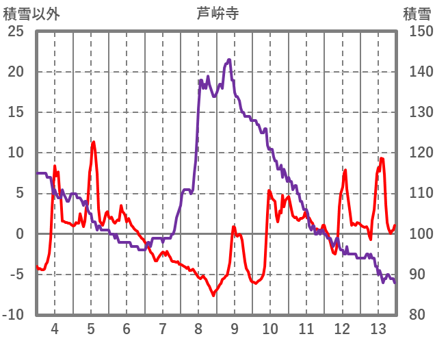 | 日 | 時 | 気温 | 降水 | 風向/風速 | 日照 | 積雪 | 降雪 |