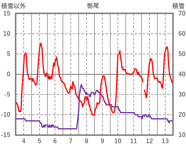 | 日 | 時 | 気温 | 降水 | 風向/風速 | 日照 | 積雪 | 降雪 |