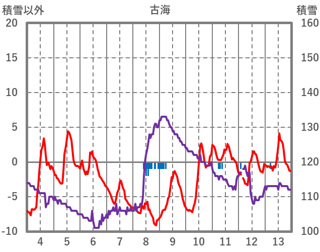 | 日 | 時 | 気温 | 降水 | 風向/風速 | 日照 | 積雪 | 降雪 |