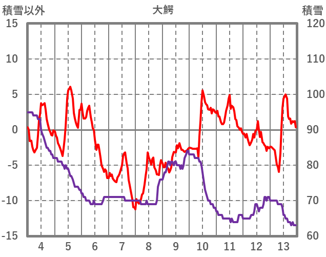 | 日 | 時 | 気温 | 降水 | 風向/風速 | 日照 | 積雪 | 降雪 |
