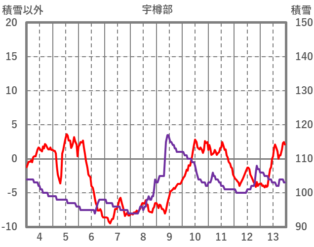 | 日 | 時 | 気温 | 降水 | 風向/風速 | 日照 | 積雪 | 降雪 |