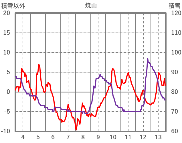 | 日 | 時 | 気温 | 降水 | 風向/風速 | 日照 | 積雪 | 降雪 |