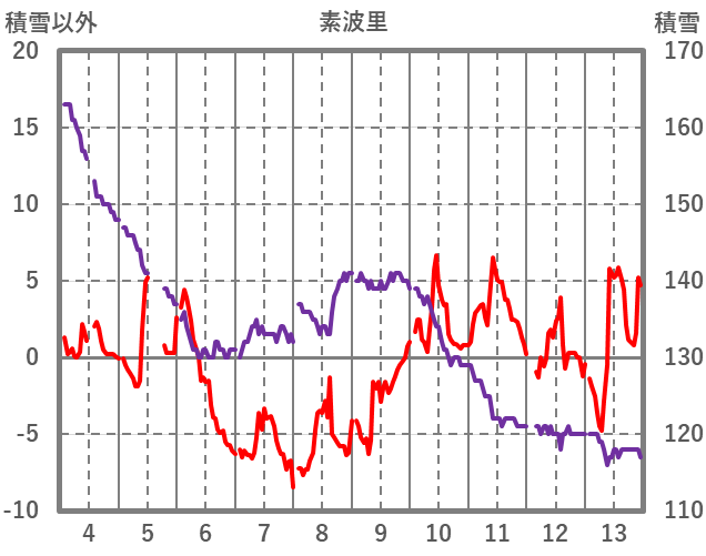 | 日 | 時 | 気温 | 降水 | 風向/風速 | 日照 | 積雪 | 降雪 |