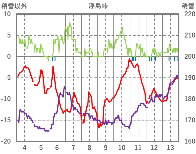 | 日 | 時 | 気温 | 降水 | 風向/風速 | 日照 | 積雪 | 降雪 |