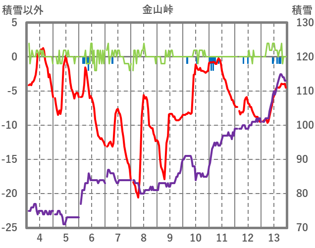 | 日 | 時 | 気温 | 降水 | 風向/風速 | 日照 | 積雪 | 降雪 |