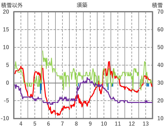 | 日 | 時 | 気温 | 降水 | 風向/風速 | 日照 | 積雪 | 降雪 |