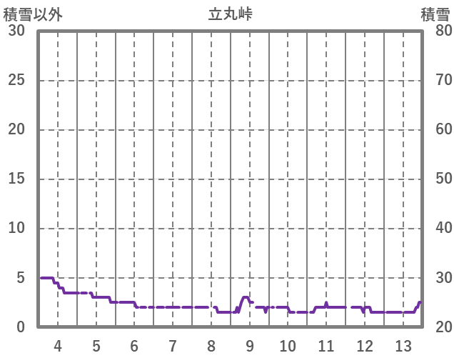 | 日 | 時 | 気温 | 降水 | 風向/風速 | 日照 | 積雪 | 降雪 |