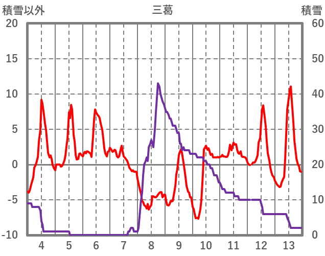 | 日 | 時 | 気温 | 降水 | 風向/風速 | 日照 | 積雪 | 降雪 |