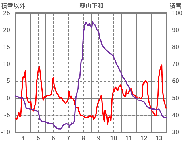 | 日 | 時 | 気温 | 降水 | 風向/風速 | 日照 | 積雪 | 降雪 |