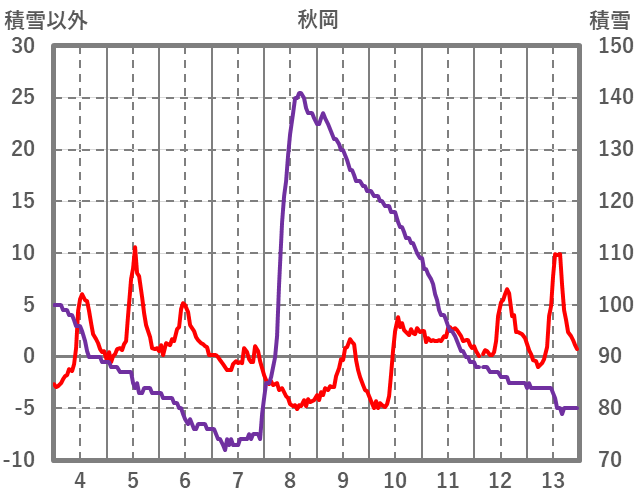 | 日 | 時 | 気温 | 降水 | 風向/風速 | 日照 | 積雪 | 降雪 |