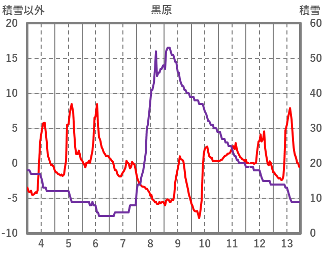 | 日 | 時 | 気温 | 降水 | 風向/風速 | 日照 | 積雪 | 降雪 |