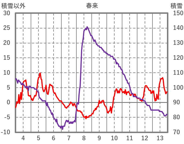 | 日 | 時 | 気温 | 降水 | 風向/風速 | 日照 | 積雪 | 降雪 |
