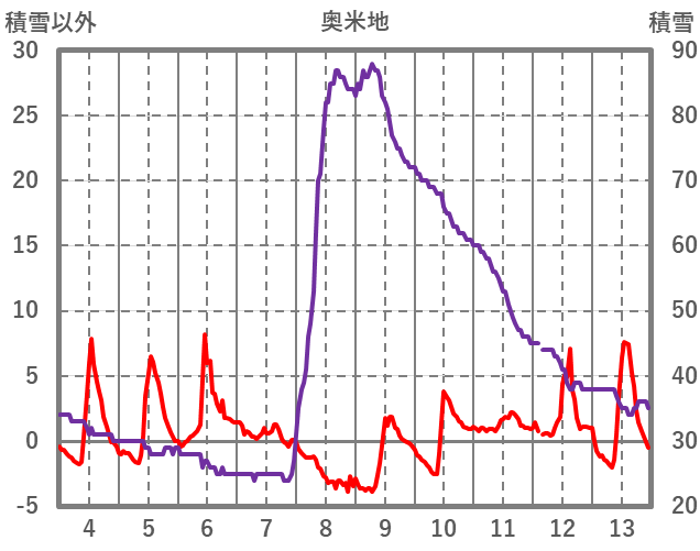 | 日 | 時 | 気温 | 降水 | 風向/風速 | 日照 | 積雪 | 降雪 |