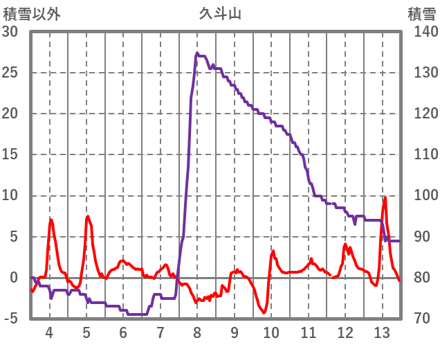 | 日 | 時 | 気温 | 降水 | 風向/風速 | 日照 | 積雪 | 降雪 |