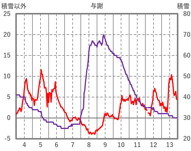 | 日 | 時 | 気温 | 降水 | 風向/風速 | 日照 | 積雪 | 降雪 |