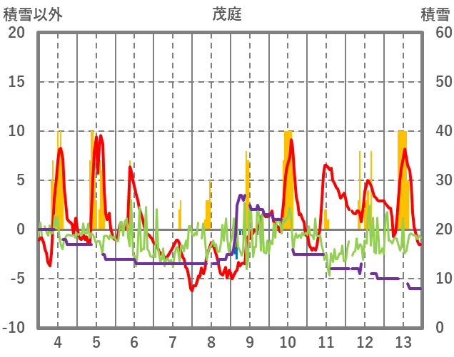 | 日 | 時 | 気温 | 降水 | 風向/風速 | 日照 | 積雪 | 降雪 |
