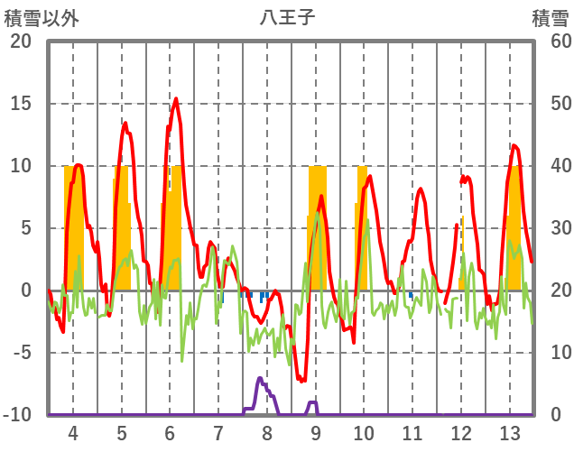 | 日 | 時 | 気温 | 降水 | 風向/風速 | 日照 | 積雪 | 降雪 |