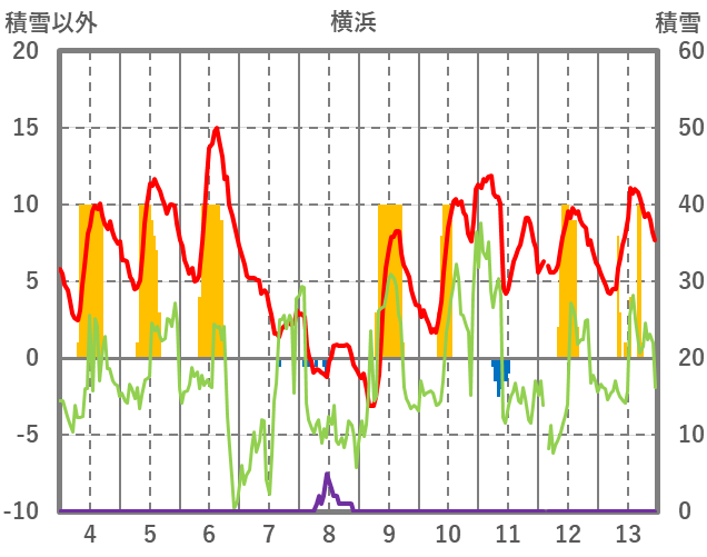 | 日 | 時 | 気温 | 降水 | 風向/風速 | 日照 | 積雪 | 降雪 |