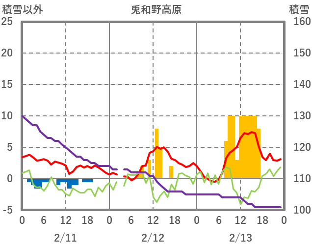 | 日 | 時 | 気温 | 降水 | 風向/風速 | 日照 | 積雪 | 降雪 |
