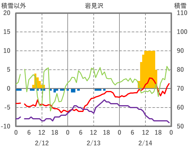 | 日 | 時 | 気温 | 降水 | 風向/風速 | 日照 | 積雪 | 降雪 |