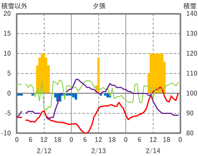 | 日 | 時 | 気温 | 降水 | 風向/風速 | 日照 | 積雪 | 降雪 |