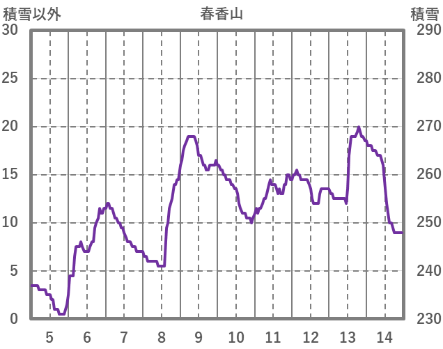 | 日 | 時 | 気温 | 降水 | 風向/風速 | 日照 | 積雪 | 降雪 |