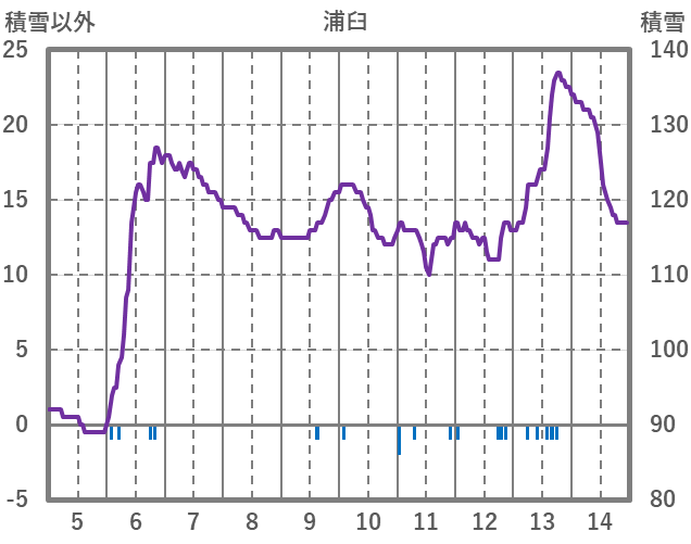 | 日 | 時 | 気温 | 降水 | 風向/風速 | 日照 | 積雪 | 降雪 |