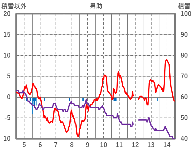 | 日 | 時 | 気温 | 降水 | 風向/風速 | 日照 | 積雪 | 降雪 |