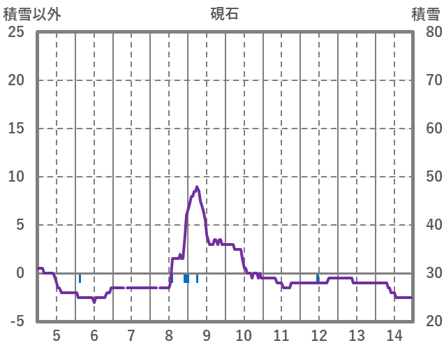 | 日 | 時 | 気温 | 降水 | 風向/風速 | 日照 | 積雪 | 降雪 |