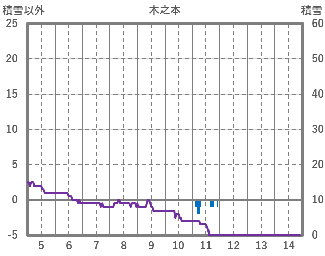 | 日 | 時 | 気温 | 降水 | 風向/風速 | 日照 | 積雪 | 降雪 |