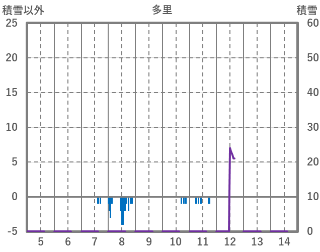 | 日 | 時 | 気温 | 降水 | 風向/風速 | 日照 | 積雪 | 降雪 |