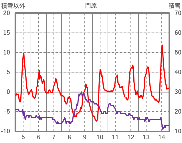| 日 | 時 | 気温 | 降水 | 風向/風速 | 日照 | 積雪 | 降雪 |