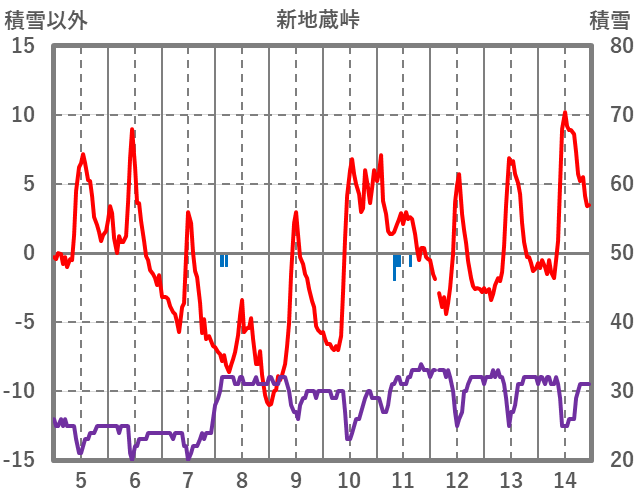 | 日 | 時 | 気温 | 降水 | 風向/風速 | 日照 | 積雪 | 降雪 |