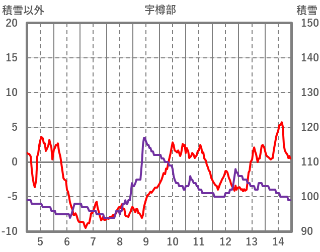 | 日 | 時 | 気温 | 降水 | 風向/風速 | 日照 | 積雪 | 降雪 |