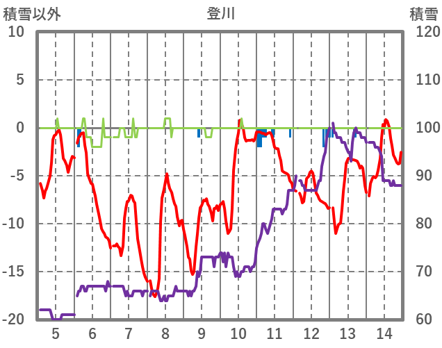 | 日 | 時 | 気温 | 降水 | 風向/風速 | 日照 | 積雪 | 降雪 |