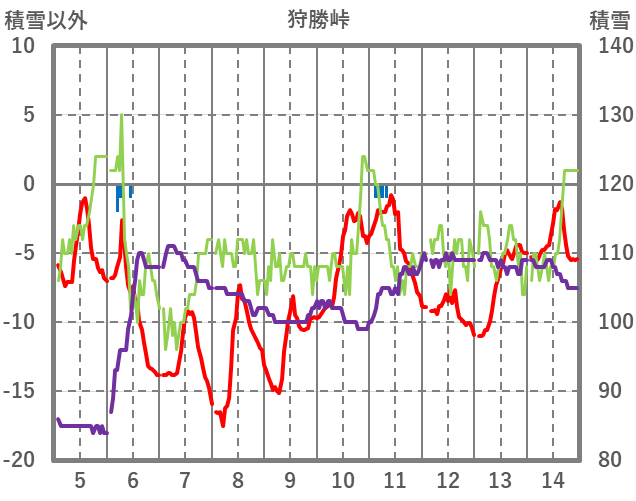 | 日 | 時 | 気温 | 降水 | 風向/風速 | 日照 | 積雪 | 降雪 |