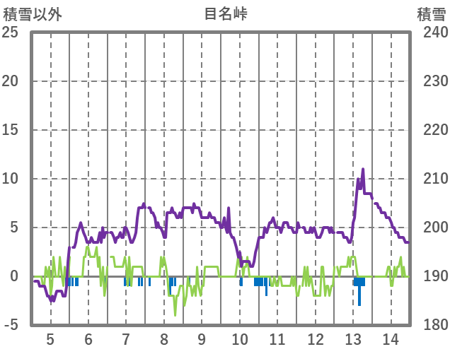 | 日 | 時 | 気温 | 降水 | 風向/風速 | 日照 | 積雪 | 降雪 |