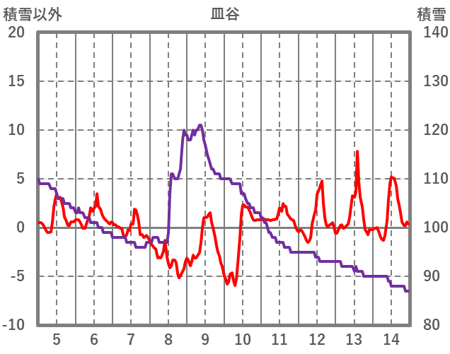 | 日 | 時 | 気温 | 降水 | 風向/風速 | 日照 | 積雪 | 降雪 |