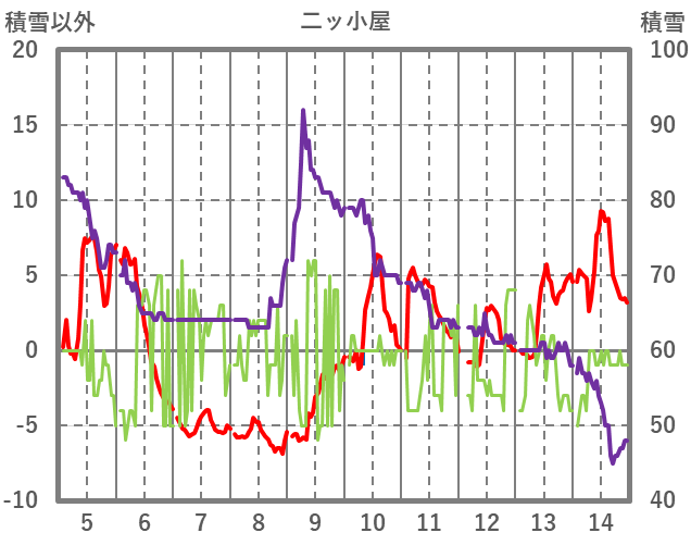 | 日 | 時 | 気温 | 降水 | 風向/風速 | 日照 | 積雪 | 降雪 |