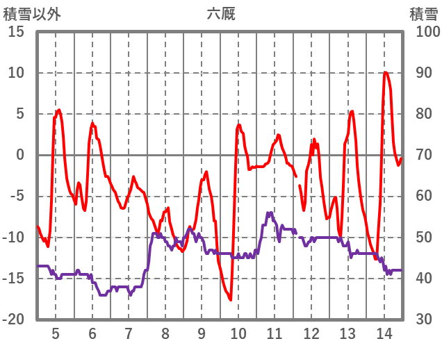 | 日 | 時 | 気温 | 降水 | 風向/風速 | 日照 | 積雪 | 降雪 |