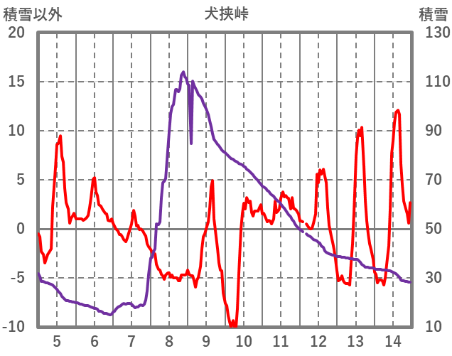 | 日 | 時 | 気温 | 降水 | 風向/風速 | 日照 | 積雪 | 降雪 |