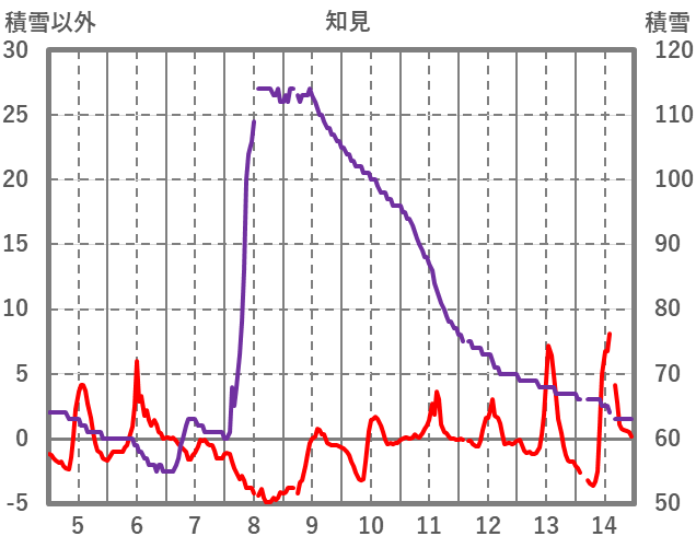 | 日 | 時 | 気温 | 降水 | 風向/風速 | 日照 | 積雪 | 降雪 |