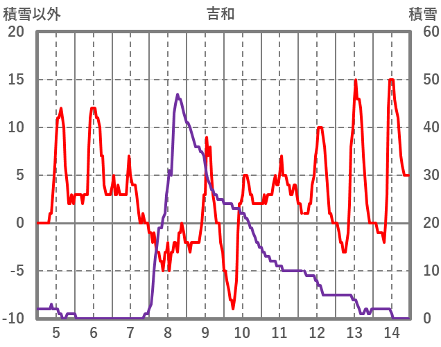 | 日 | 時 | 気温 | 降水 | 風向/風速 | 日照 | 積雪 | 降雪 |