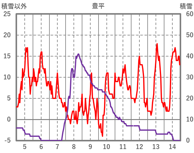 | 日 | 時 | 気温 | 降水 | 風向/風速 | 日照 | 積雪 | 降雪 |