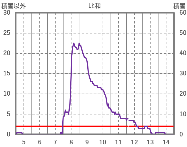 | 日 | 時 | 気温 | 降水 | 風向/風速 | 日照 | 積雪 | 降雪 |
