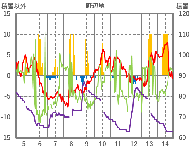 | 日 | 時 | 気温 | 降水 | 風向/風速 | 日照 | 積雪 | 降雪 |